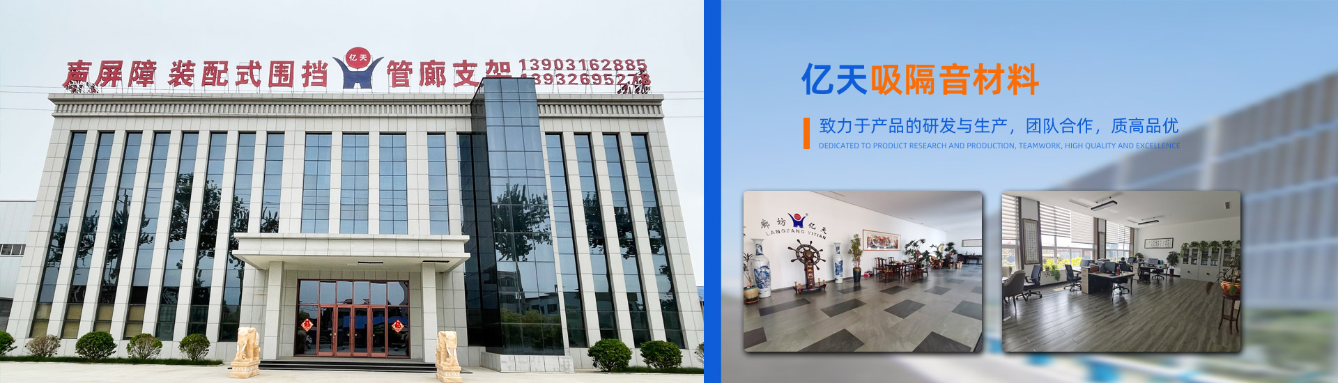 廊坊億天吸隔音材料有限公司于1997年建廠,公司位于河北省廊坊市文安縣興隆宮鎮朱河村工業區,地處京、津、冀金三角地帶,注冊資金8005萬元。公司一直致力于環保產品的研發與生產,主要涉足于公路鐵路噪聲處理、廠房鋼結構、防塵抑塵治理、環境美化四大領域。主營產品有高速鐵路用···